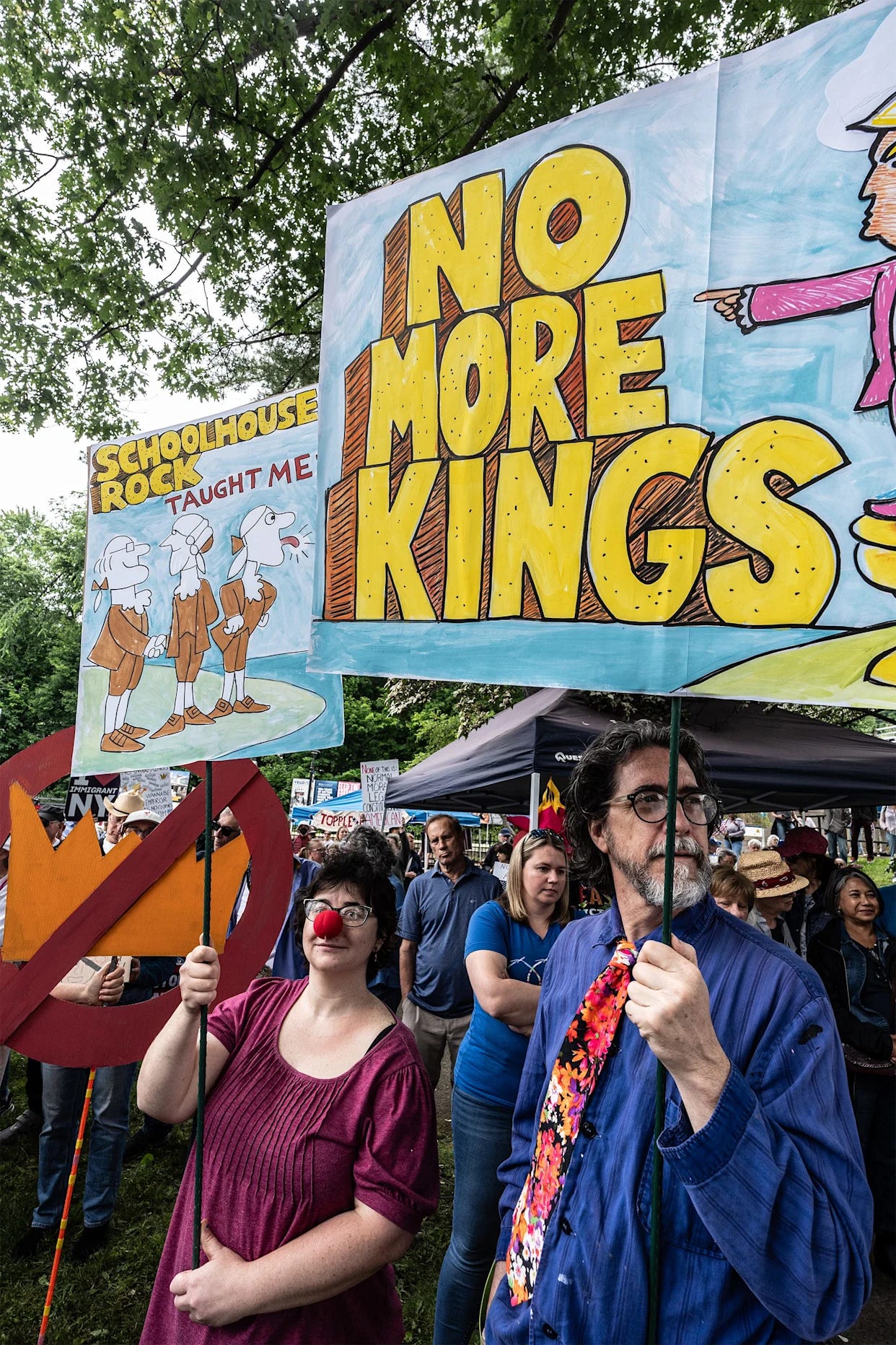 “If you’ve heard any Republicans talk about Saturday’s No Kings marches across the country, you know what they’re calling them. House Speaker Mike Johnson on Wednesday referred to the marches collectively as a ‘hate America rally.’ He continued: ‘Let’s see who shows up for that. I bet you see pro-Hamas supporters. I bet you see antifa types. I bet you see the Marxists in full display.’ Many others on the right have echoed these sentiments over and over, and Fox News and the other state propaganda outlets have followed suit, thus washing the brains of their viewers into accepting, once again, the exact opposite of reality … Have a gander at this map of march locations for tomorrow. There are 16 in Wyoming—a state notoriously pulsing with Hamasniks. There are 18 in Oklahoma, that veritable hornet’s nest of antifa hooliganism. There are another 18 in my home state of West Virginia (go, Morgantown contingent!), where Marxism has obviously taken deep root among an unsuspecting populace.” (Michael Tomasky/TNR)
